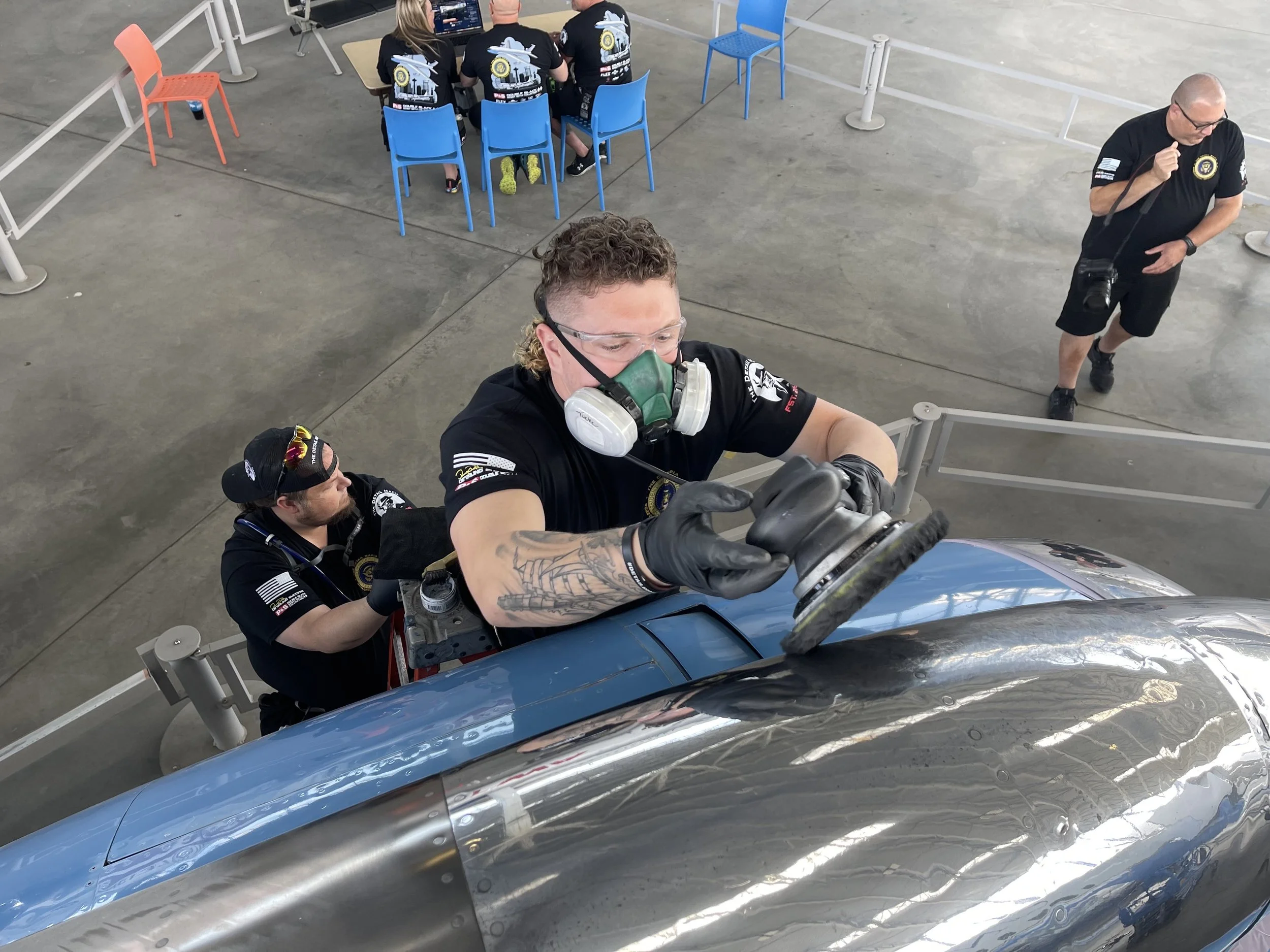 Doyle chooses his team members very carefully from The Detail Mafia, a group of some of the most prestigious and highly skilled detailers in the world that he has certified over the years through his Detailing Success training program. Many of them are senior members of the team that go back to the original restoration project in 2003, while he also tries to bring in at least 10 first -time team members or "rookies" every year who have proven themselves meticulous paint correction and polishing craftsmen.